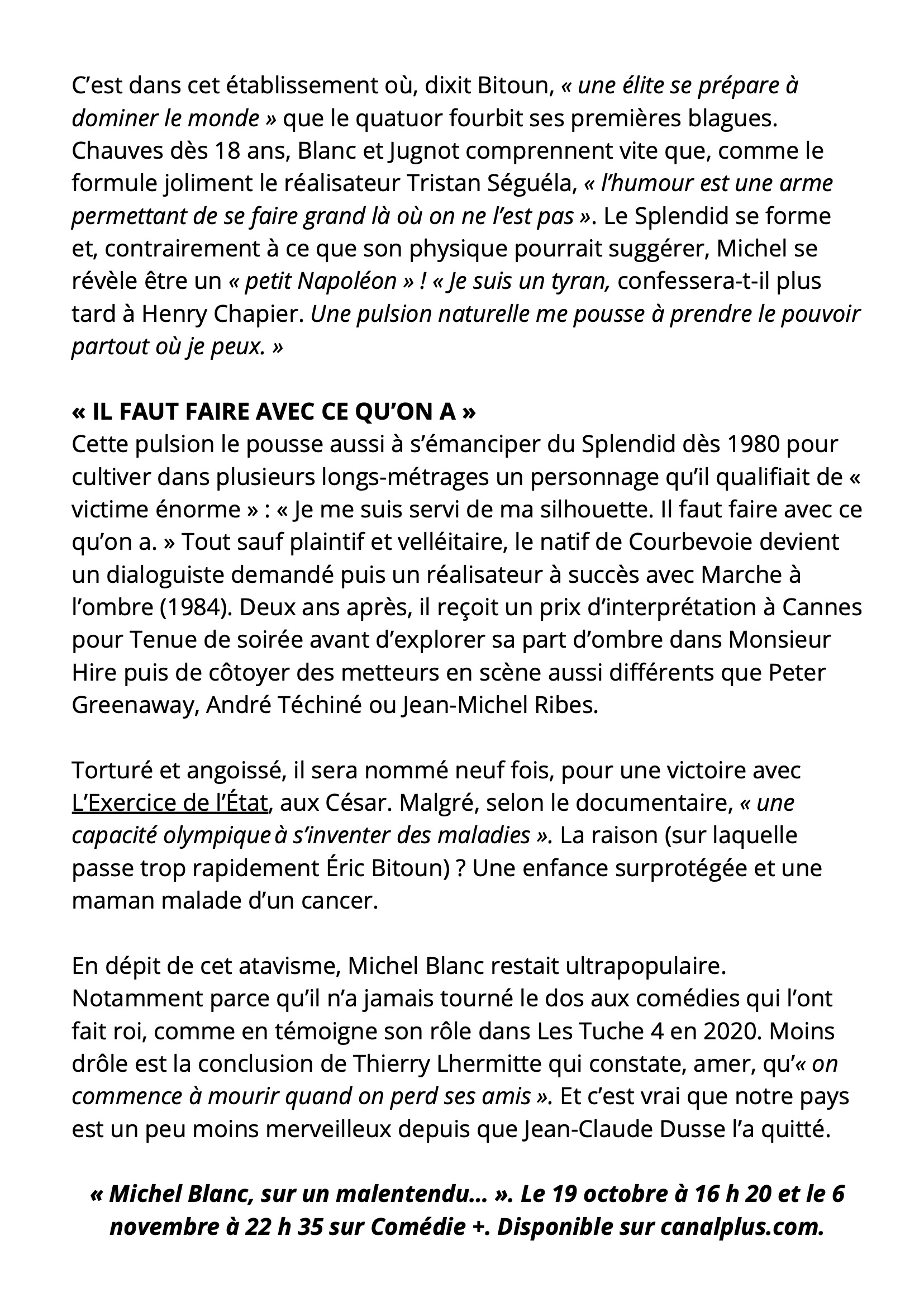 MICHEL BLANC, SUR UN MALENTENDU…